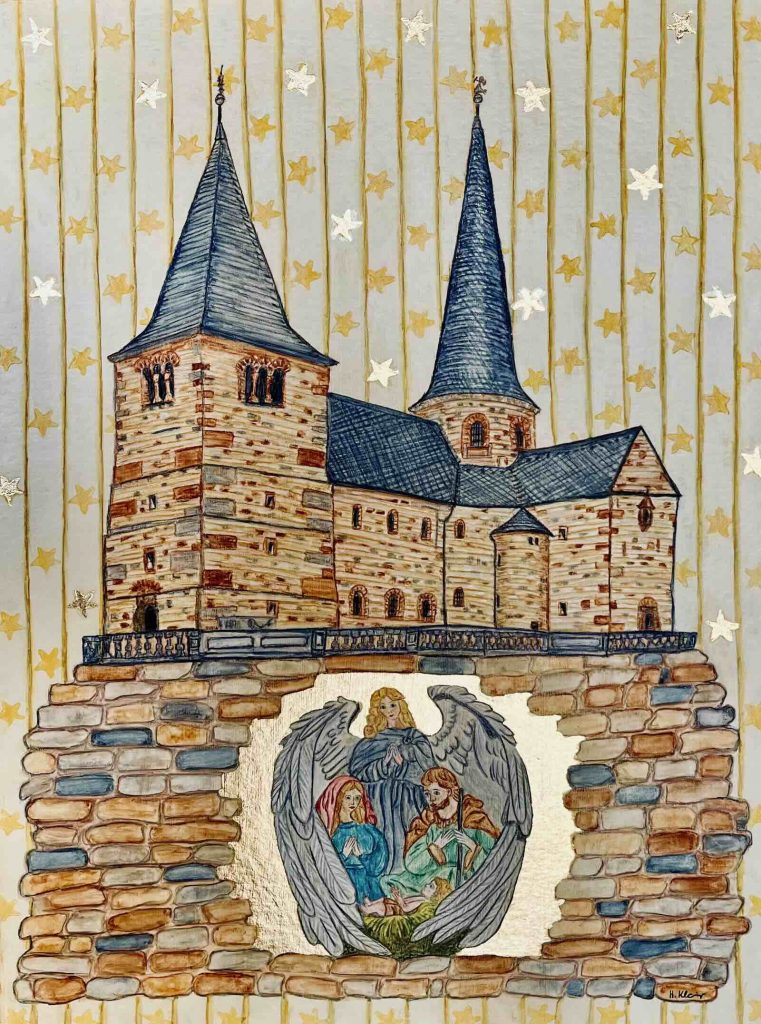 Dieses Werk zeigt den Fuldaer Dom in einer stimmungsvollen, weihnachtlichen Atmosphäre. Im Vordergrund befindet sich eine liebevoll gestaltete Krippenszene mit der Heiligen Familie – eine Erinnerung an den Kern von Weihnachten.