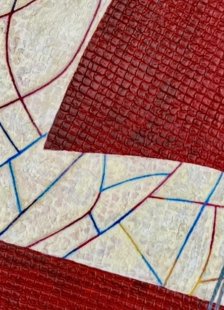 Und während ich sortierte, entstand etwas Neues: ein weiteres Osterbild für eines meiner Heimat-Projekte. Noch ein Geheimnis, aber ein kleiner Ausschnitt verrät schon einiges: stark strukturiertes Rot, fast reliefartig, daneben Beige, durchzogen von feinen farbigen Linien mit einer Bewegung von dunkel nach hell.