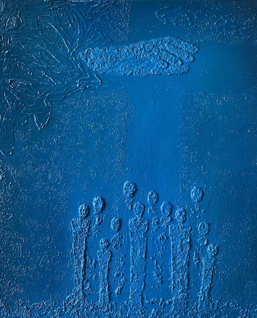 Zentral ist eine Figur aufgetragen. Sie symbolisiert „die guten Mächte“, von denen Dietrich Bonhoeffer einst schrieb. Aus seinen Zeilen ist ein sehr bekanntes Kirchenlied geworden. Vor allem der Kehrvers des Liedes „Von guten Mächten treu und still umgeben“ klingt uns im Ohr und transportiert sehr ausdrucksstark die Intention des Osterbildes 2019: „Von guten Mächten wunderbar geborgen / erwarten wir getrost, was kommen mag. / Gott ist bei uns am Abend und am Morgen / und ganz gewiß an jedem neuen Tag.“