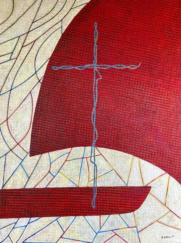 Das Kreuz als Sinnbild des Glaubens durchzieht den Anker als Symbol der Hoffnung. Die Botschaft des Kunstwerks lautet: Trotz aller Herausforderungen und Komplexität unseres Daseins entsteht ein hoffnungsvolles Ganzes – getragen von Gottvertrauen.